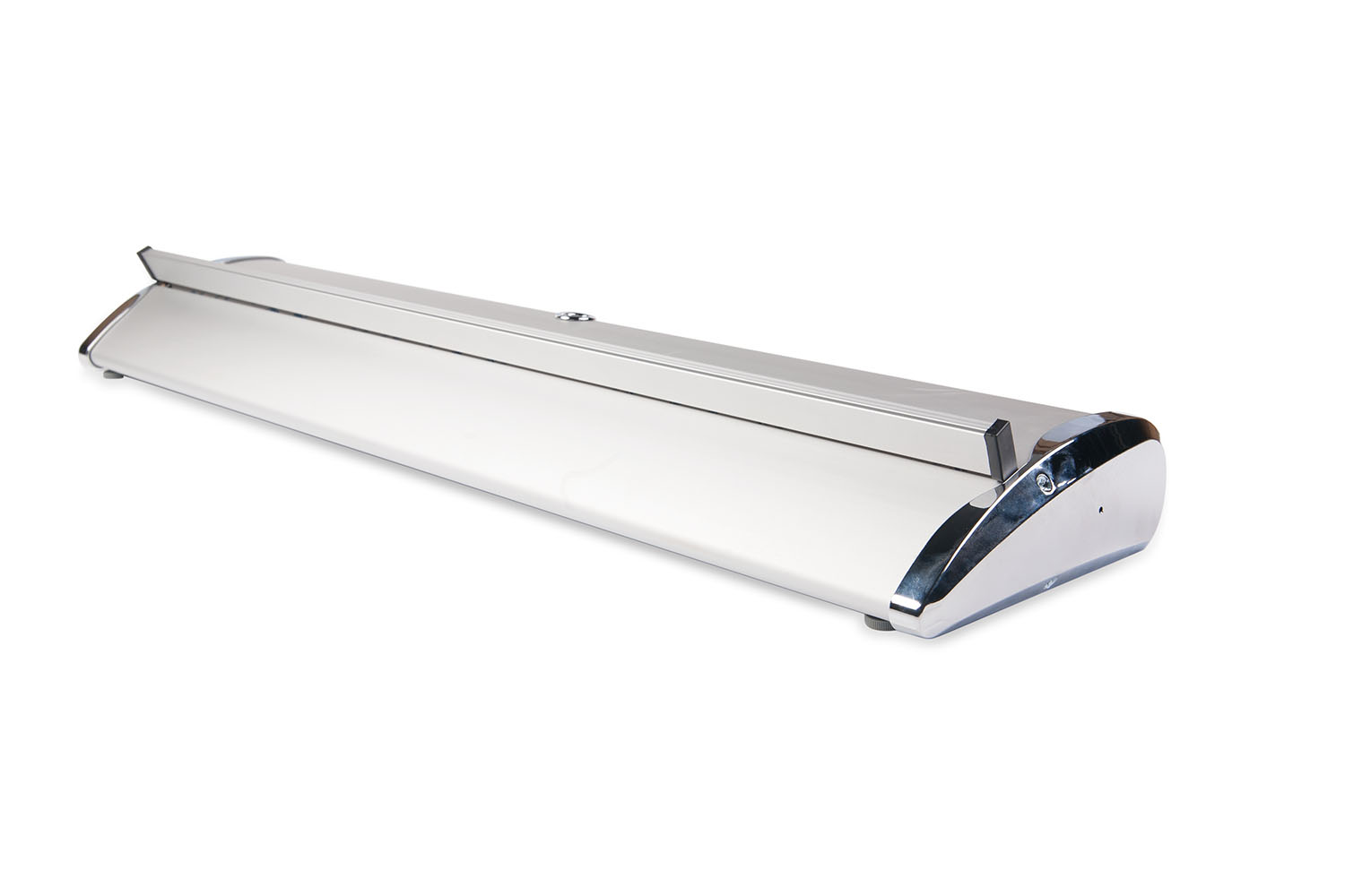 Mit dem Roll-Up Banner von Medienshop T23a in Achern, Offenburg, Baden-Baden, Kehl und Oberkirch erhalten Sie ein Banner aus der Standard-Reihe. Dieser ist Silber eloxiert und kommt mit einer Klemmschiene sowie verchromte Endkappen daher. Die beiden verchromten Endkappen stechen bei diesem System besonders hervor und verleihen Ihnen einen exclusiven Auftritt. Auch für Messen, Events, Ausstellungen, Werbeaktionen und Ähnliches eignet der Roll-Up Banner sich ideal, denn er kann einfach und bequem in der mitgelieferten Transporttasche transportiert werden.